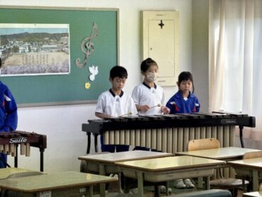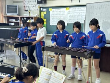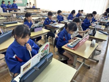 音楽の時間には、「ゆかいな木琴」の合奏をしました。木琴と鍵盤ハーモニカでの合奏です。間違えないように一生懸命な様子でした。