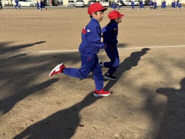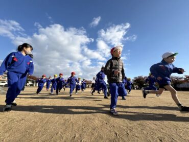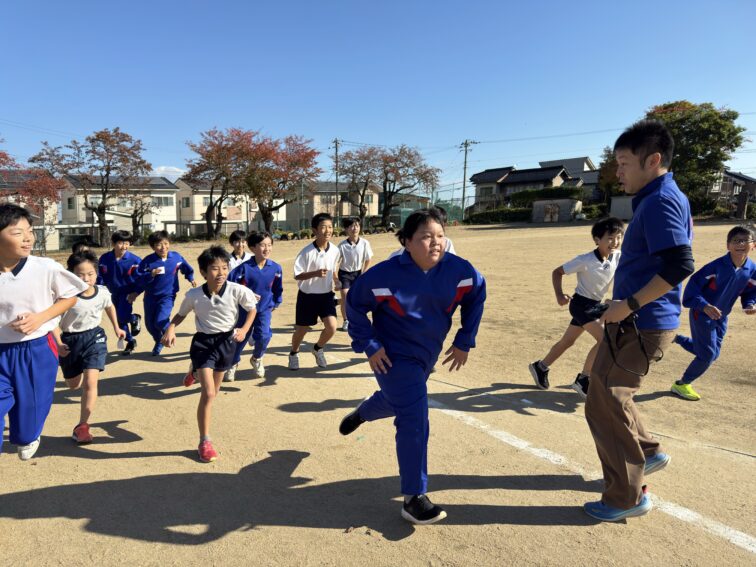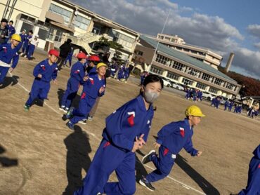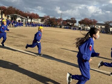 その後、5・6年生はすぐに朝5運動へ。全校児童が気持ちよくグラウンドを走りました。