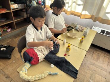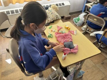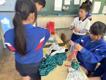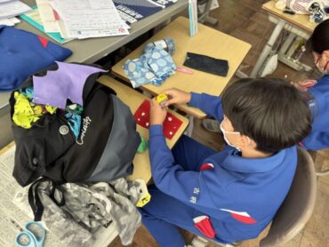 図工の工作「うまれかわった なかまたち」も完成にだいぶ近付いてきているようです。元の材料から、生まれ変わって別のものに変身しています。一体何に変身したか、校内作品展でご覧ください。