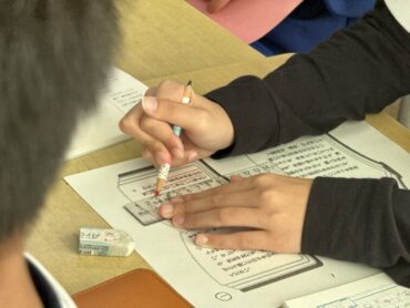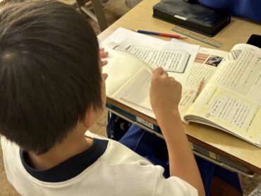国語で「中心となる語や文を使って要約」をしました。ワークシートを使って、大事な語や文に線を引きながら、要約につなげていきました。