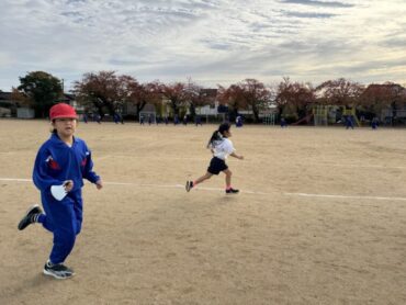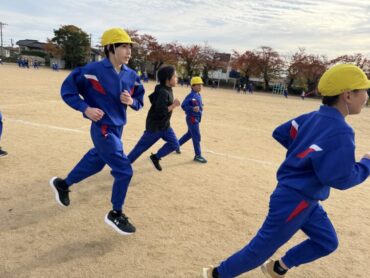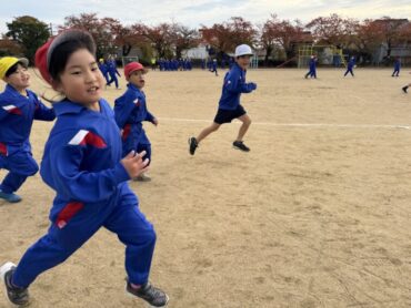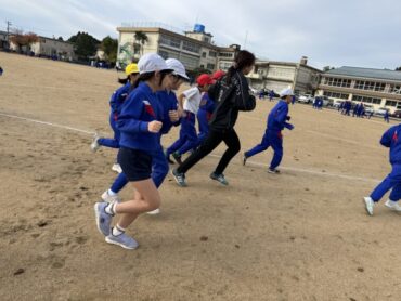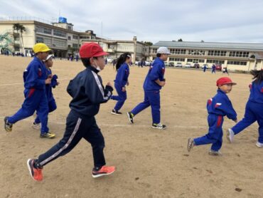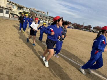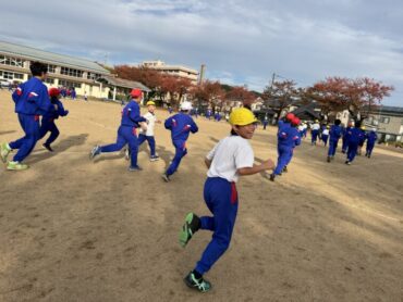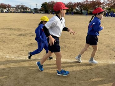 運動委員長の元気な号令で朝5運動!グラウンドでの朝5運動ももう少しとなりました。