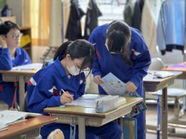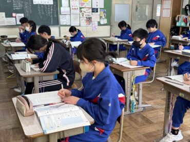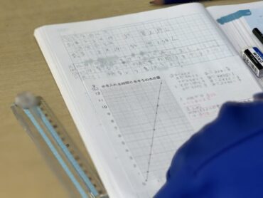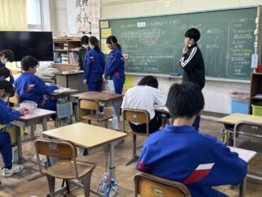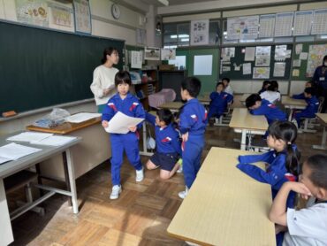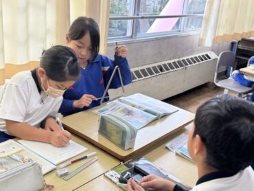 2組も1組と同じで、算数の比例の授業でした。2組は比例のグラフを利用して、XやYの値を求める勉強をしました。Xの値が分かっているとき、グラフをたどってYの値を求めたり、その逆の問題をしたりしました。グラフを使う方法を理解できたようです。