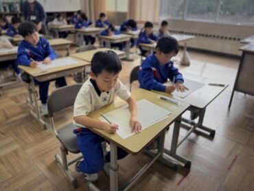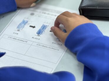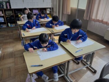 書写の時間でした。「お手紙」のお手本を見ながら、視写しました。まず、配り物係がお手本や鉛筆を配りました。先生の言われたとおりにお手本を練習用紙のすぐ横に置いて、丁寧に書き写しました。