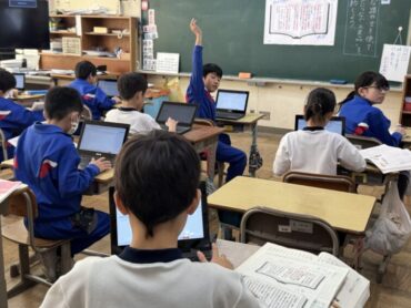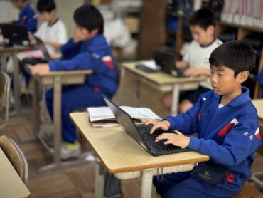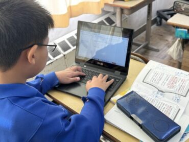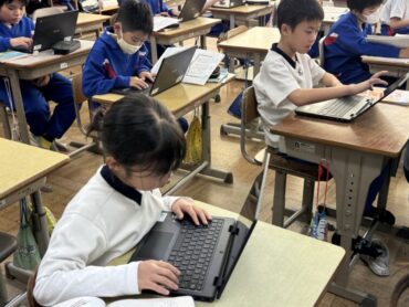 国語の「未来につなぐ工芸品」の文を要約する学習の続きです。今日はワークシートで大事な文や言葉を探していましたが、今日はそれらを使った要約文を学習専用端末に入力しました。ワークシートを見ながら、スムーズに入力作業を進めていました。