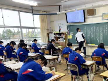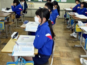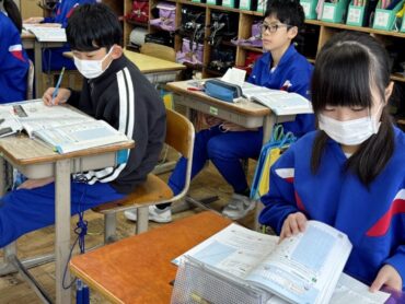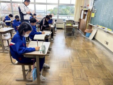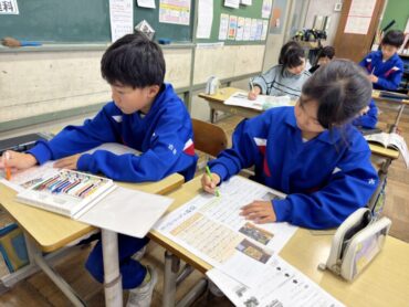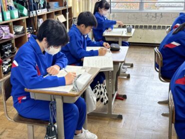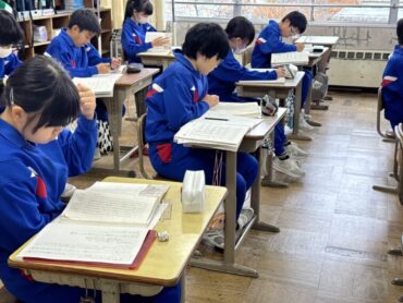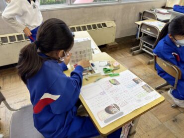 国語の授業で「鳥獣戯画を読む」という説明文の勉強をしていました。教科書をよく読んで、考えている様子でした。