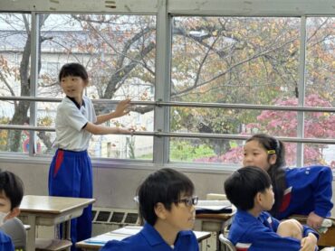算数の授業で垂直や平行について勉強し、身の回りにある垂直や平行を見付けて発表しました。大きなものから小さなものまで、たくさんの垂直や平行に気付きました。