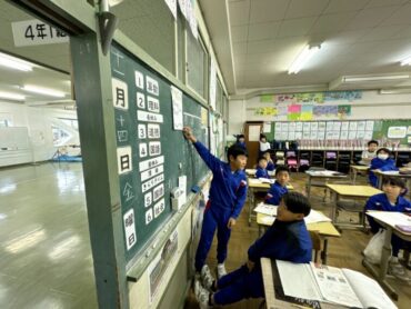 算数で比例のグラフをかいて、グラフのよさについて考えました。教科書の勉強の後はドリルをして今日の学習のたしかめをしました。グラフのかき方もよくできていました。