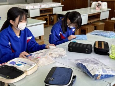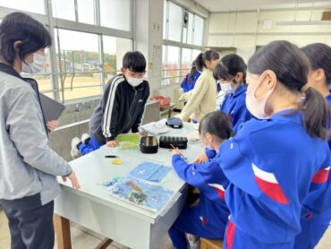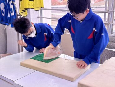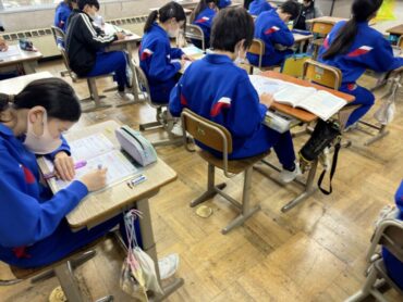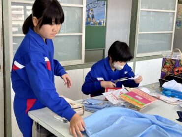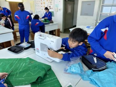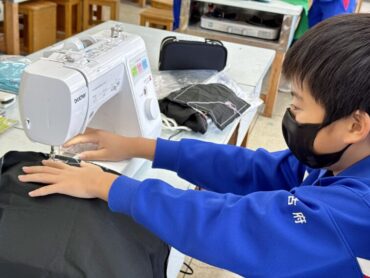 3時間目と4時間目は家庭科のエプロン作りをしました。ミシンはちょっと不安なのか、とてもゆっくりのスピードで運転していましたが、だんだん慣れてくると軽快に縫い進めていました。返し縫等も忘れずにできていました。