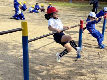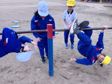 2年生も体育の授業では鉄棒をしていました。2年生はそれぞれ自分の挑戦したい技を練習していました。友達とじゃんけんを楽しんだり、後ろ回りや足かけ回り等、少し難しい技をどんどんしている児童もいました。すごいですね。