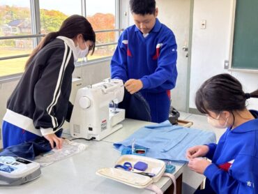 家庭科ではエプロンの製作をしています。ミシンがけや刺しゅう、アップリケづくり等に熱心に取り組んでいました。刺しゅうとアップリケを組み合わせるアイディアも見られました。
