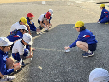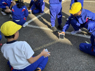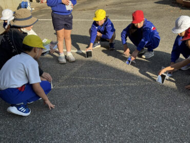 朝5運動の後、太陽が出ているうちに理科の光の勉強をしました。光を鏡で反射させて、まっすぐに光がのびている様子や友達の鏡に光を当てて、別の方向に進む様子を観察しました。うまくいったとき、3年生はとても喜んでいました。
