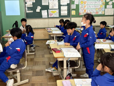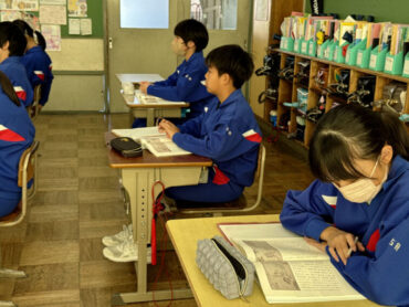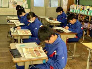 国語「鳥獣戯画を読む」の音読をしていました。順番が来たら、次々に自分の担当する文章を声に出して読みました。高学年でもしっかりと音読することは大切なので、家庭学習でもぜひ取り組みましょう。