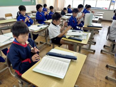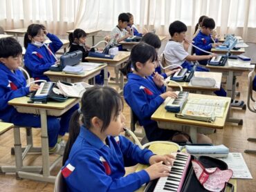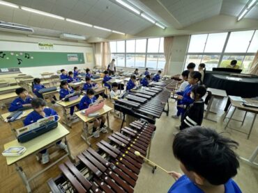 音楽の授業で「ゆかいな木きん」をリコーダーと木琴で合奏をしていました。1回演奏が終わると、木琴は次のグループと交代です。みんな木琴を早くやりたそうでした。