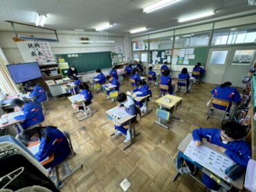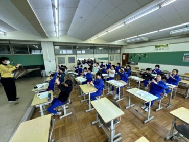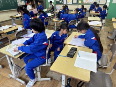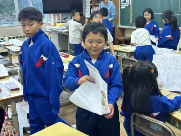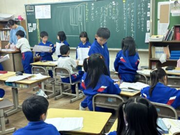 算数の単位量当たりの大きさの文章問題に取り組みました。5年生の算数の難しいところです。でも多くの5年生が手を挙げて自分の考えを進んで発表しようとしていました。間違えてもいいので、チャレンジが大切です!
