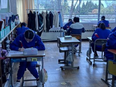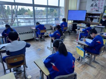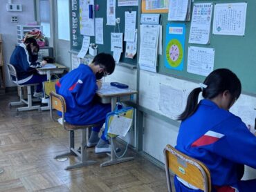 英語のリスニングテスト中でした。集中して英文を聞いて、テスト用紙に記入しています。テストの邪魔にならないように、静かにテストの様子を見てきました。
