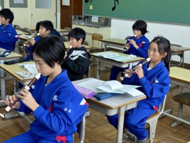 リコーダーで「オーラ リー」を演奏していました。演奏の前にしっかりと姿勢を整えてから、リコーダーを吹き始めました。どの教科でも姿勢は大切です。