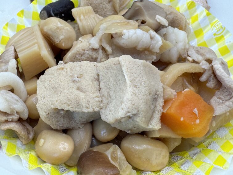 大豆の原産地は中国北東部で、日本に伝わってきたのは縄文時代以前と考えられています。当時、肉をあまり食べなかった日本人にとって数少ないタンパク源でした。大豆を使用した料理はたくさんありますが、豆腐のように加工しないで大豆をそのまま軟らかく煮て食べる五目豆は、栄養もあり古くからの伝統料理です。味わっていただきましょう。