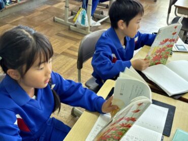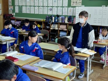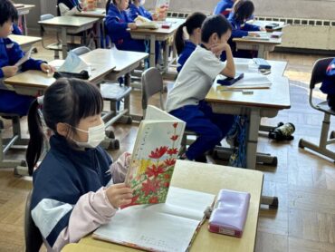 国語では「みきのたからもの」というお話を勉強しています。まだこの教材に入ったばかりのようで、「とうじょう人ぶつと、できごとをかくにんしよう」という学習課題で、音読をしていました。読み終わった後、登場人物を尋ねると、勢いよく手が挙がりました。