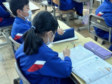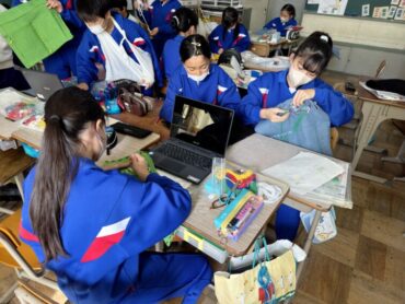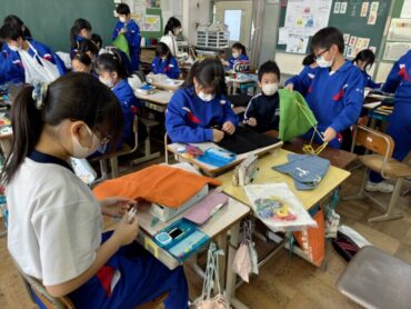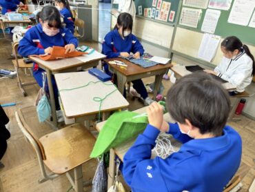家庭科「ウォールポケットづくり」で、ミシンをかけたり、刺繍をしたりしていました。針やハサミを使うのでみんな集中して、安全に気を付けて作業していました。学習専用端末で検索した画像を参考に刺しゅうをしている5年生もいました。イメージどおりの作品になるよう、頑張りましょう。