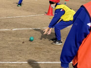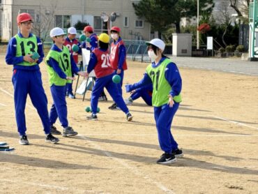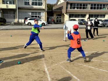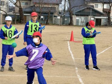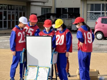 昨日に続いて、ベースボール型ゲームを6年生全員で行いました。チームごとに作戦を立て、練習開始。