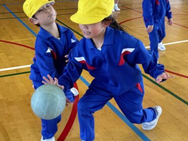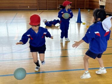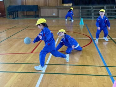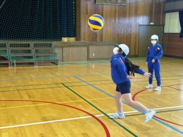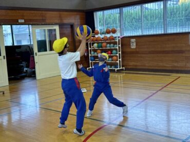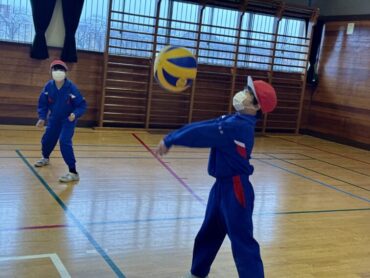 体育の授業でソフトバレーボールをしていました。ルール説明を聞いてから、チームを二つに分けて練習しました。ソフトなボールなので、こわくなく、ボールを積極的に取りに行っていました。キャッチも1回はあり、になっています。