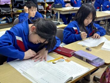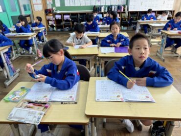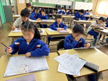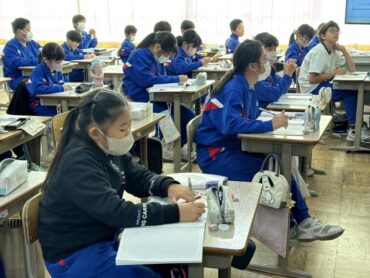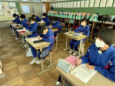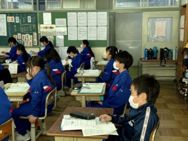 理科のプリントの答え合わせをしていました。よい姿勢で、集中して説明を聞いている6年生が多かったです。そろそろ期末テストが近いという緊張感からでしょうか?