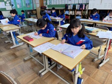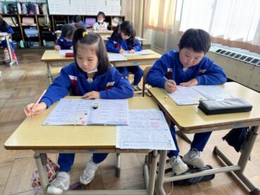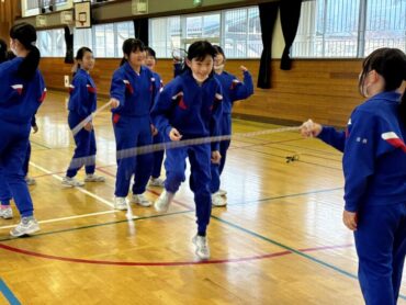 6時間目は体育。大縄跳びをしていました。さすが5年生。とても上手でしたが、ダブルタッチは少し難しかったようです。