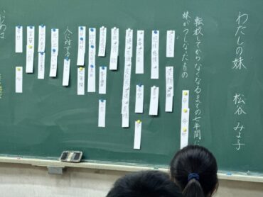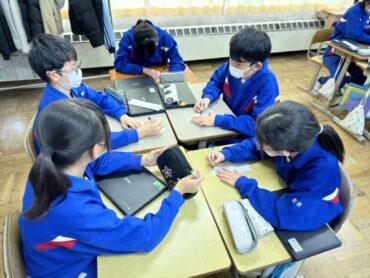 6限の道徳は、「わたしのいもうと」といういじめの教材を使った授業でした。ペアで話し合ったり、グループで考えを短冊に書いたりして、いじめの問題についてみんなで考えるとてもよい授業でした。最後に学習専用端末で、授業を通して考えたことを入力しました。ぜひ、この話が6年生の心にどう響いたのか読んでみたいです。