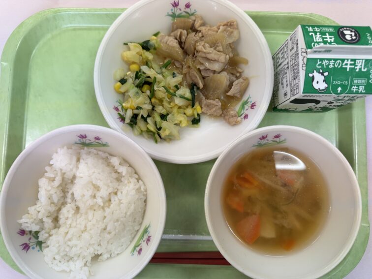 5月に5年生が田植えの体験、9月に稲刈りの体験をして、お米がどのようにできるのかを学びました。今日のごはんは、5年生が田植えと稲刈りの体験をして収穫したお米を使用しました。