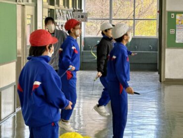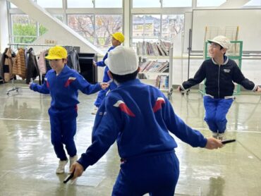 久し振りの朝5運動。4年生は教室前広場で、短なわとびの練習をしました。元気になって登校できて、よかったです。