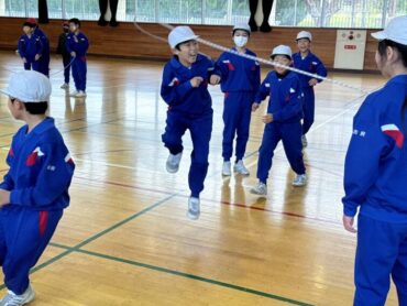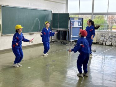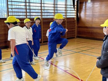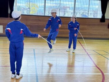 体育の授業では、長なわとびをしていました。色団対抗して制限時間内で跳んだ回数を競っていました。リズミカルに、ちょっとポーズを付けて余裕のあるところを見せながら、楽しそうになわを跳びました。空中での姿がかっこいいですね!