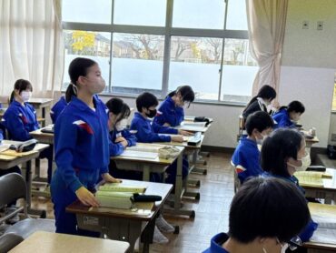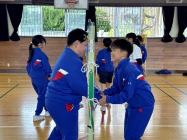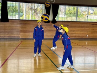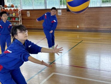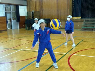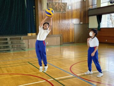 体育ではソフトバレーボールをしました。サーブが入らないと試合が進まないので、まずはサーブ練習。その後、ゲーム形式でボールをつなぐ練習をしました。