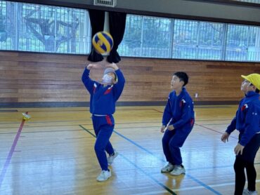 体育でソフトバレーボールをしました。ウォーミングアップで、チームごとにパスをつなぐ練習をしてから、ゲーム開始。ボールを一生懸命に追いかけて、ボールを拾いました。ボールをすぐに相手コートに返すのではなく、チームでつないでいいところで打つように心掛けていました。