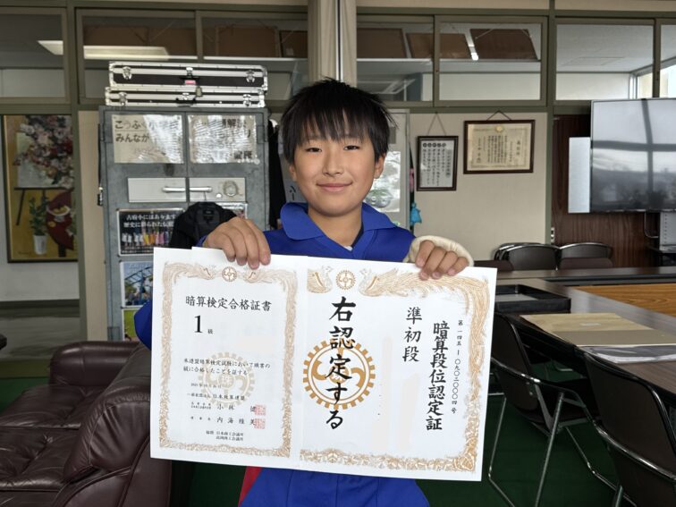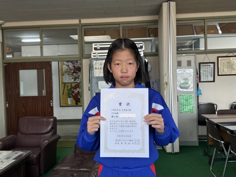 2025.12.2 NEW 5年生 6年生 12/2(火) 授賞式を行いました 12/2(火) 校長室で授賞式を行いました。 暗算検定合格証書 1級 暗算段位認定証 準初段 アイザック杯・第24回富山県ジュニアレスリング大会 小学女子5~6年生の部 33kg級 第1位 おめでとうございます!日頃の練習の成果ですね。これから一層レベルアップしたり、勝利を重ねたりできるよう、頑張ってください!!
