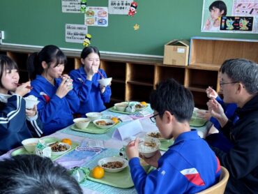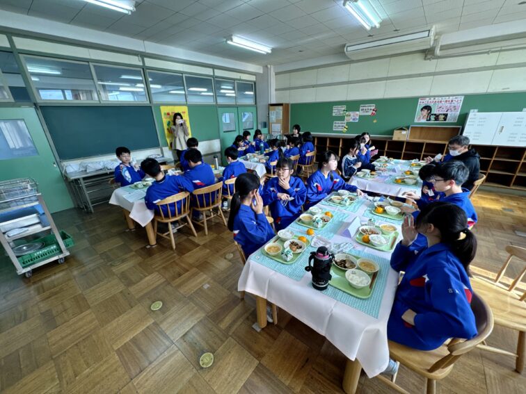 2025.12.2 NEW 6年生 12/2(火) 交流ランチをしました(6年1組) 12/2(火) インフルエンザの流行もあり、予定を少し延期していましたが、今日から交流ランチを開始しました。最初は、6年1組です。 案内されてランチルームへ行くともうすっかり準備が整っていて、6年1組のみんなが温かく迎えてくれました。卒業ランチのムードを感じました。 給食に関するクイズや6年生との会話を楽しみました。同じテーブルの児童の特技や趣味、血液型、はやりの性格診断等、新たな発見があり、とてもいい交流ができました!ありがとうございました。 明日12月3日(水)は、4年1組です。