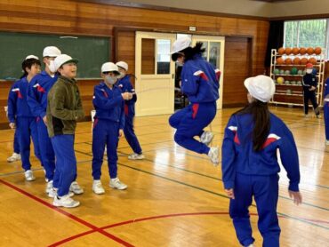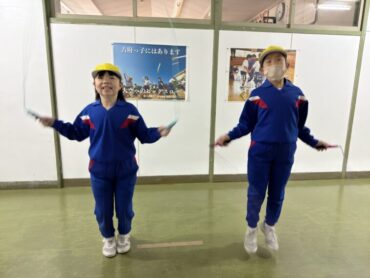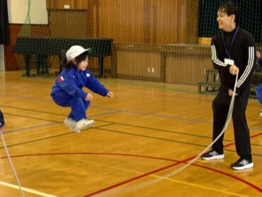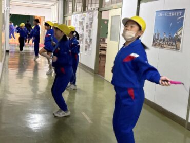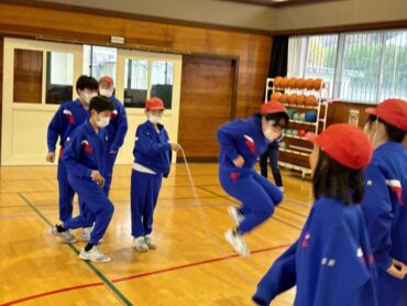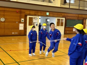 今日の朝5運動は、1年生と5年生が体育館で長なわとび。1年生はまだタイミングがつかめないようです。上手な5年生の様子を見て、跳べるようになりましょう。楽しいですよ。