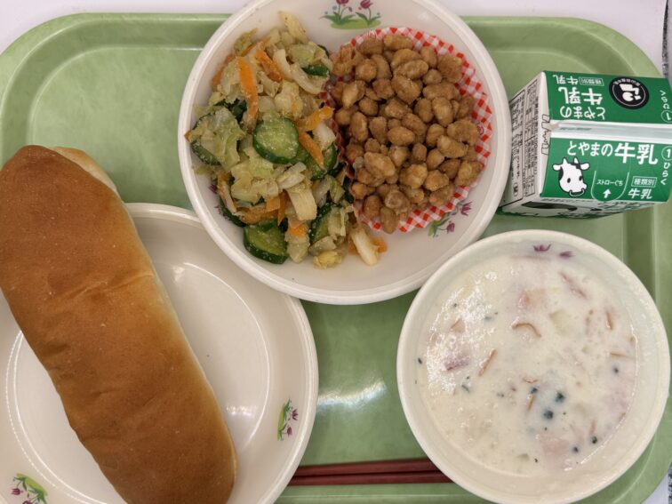 今日は冬らしくポタージュにしました。作ってくださっている調理員さんに感謝して食べましょう。