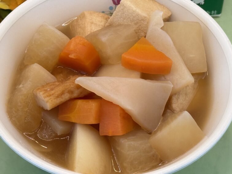 おでんの具には、さつま揚げ等の魚介類の練り物や大根、人参等の野菜、豆腐等の豆製品が入っており、高たんぱく低カロリーですが、食物繊維やビタミン、ミネラルも豊富です。また、温かいスープは深部体温を高め、血行をほぐすことで、免疫力低下を防ぎます。栄養満点のおでんを食べて心も体も温まりましょう!