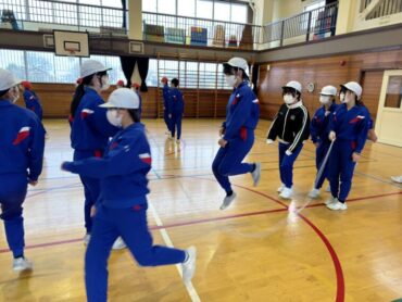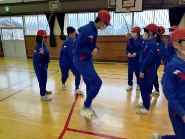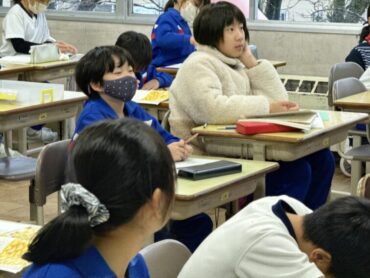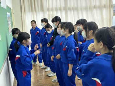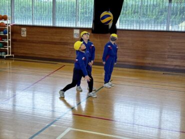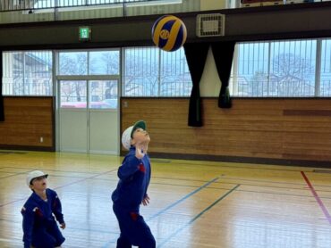 ソフトバレーボールをしていました。体育館はとても寒いですが、元気にプレーしています。授業の終わりには、どうしたらボールがうまくつながるか、考えました。