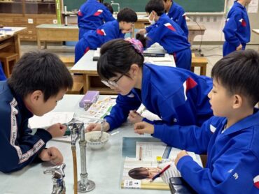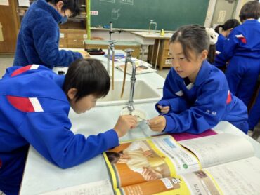 理科で「物のあたたまり方」の実験をしました。お椀にお湯を入れてスプーンを浸し、どうなるかを触って確かめました。家でも経験があることですが、改めてスプーンのいろいろなところを触ってみると、発見がありました。