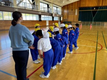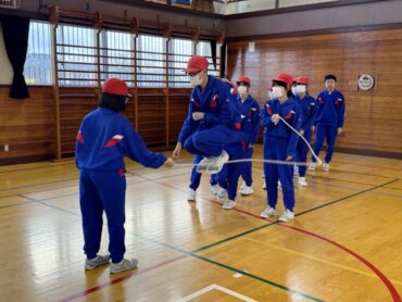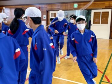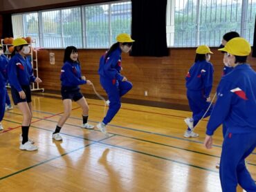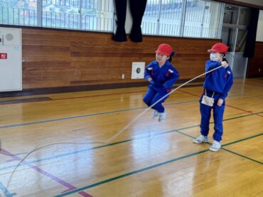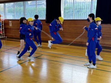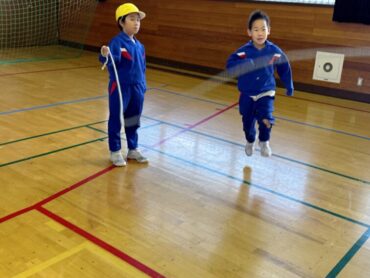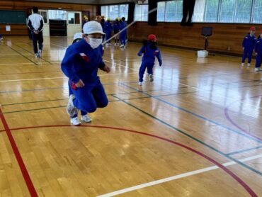 2年生 上手に自分でタイミングを計ってなわを跳んでいました。同じ体育館の上級生の様子を見て、憧れの気持ちをもってレベルアップを目指しましょう。