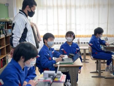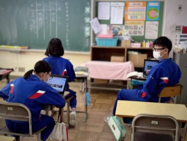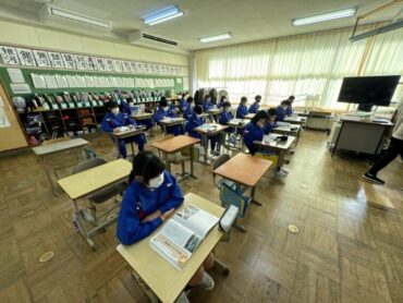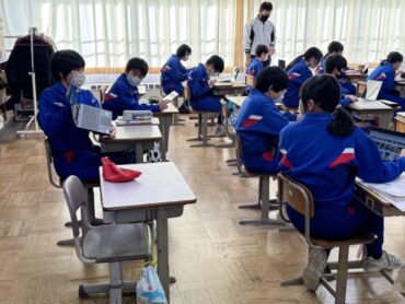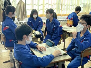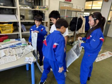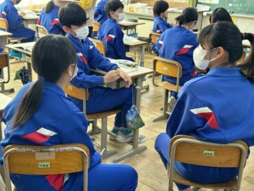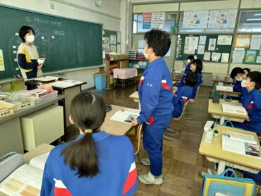 道徳「世界がおどろく七分間清掃」と黒板に教材の題名が書いてあり、何の清掃だろうか?思いましたが、新幹線の清掃の話で、そういえば以前テレビでも紹介されていたことを思い出しました。世界の人々が驚く理由や、清掃員さんたちの思いを考えて話し合い、グループの代表が発表をしました。