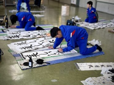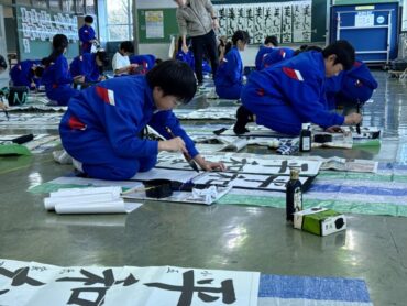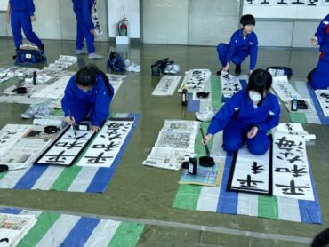 5年生も今日は書初練習に励みました。広場で書初用具や紙を広げていましたが、人数が多く、埋め尽くされているような感じでした。そんな中でもみんな心を落ち着けて、周りを汚すことなく練習できているのはさすが5年生ですね。