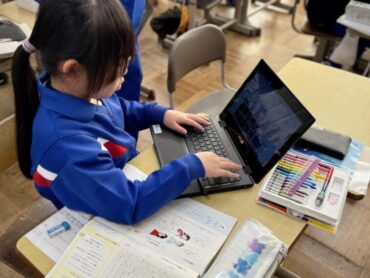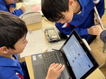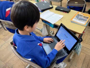 国語「おすすめのパンフレットを作ろう」という活動で、班ごとにテーマを決定しました。「映画」「スポーツ」等を選んでいました。「アニメ」という声も聴かれました。班のメンバーはそのテーマについて、一人一人が自分で学習専用端末で調査活動をしました。