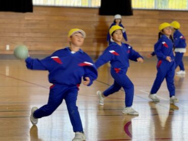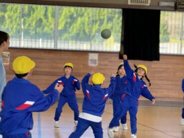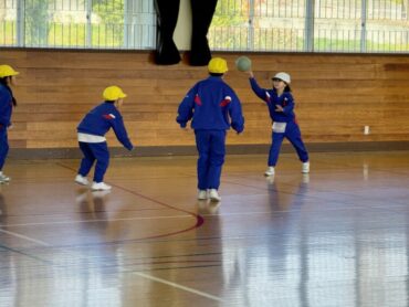 体育館でドッジボールが始まるところでした。白対黄の対戦です。当てたり、当てられたり、いい勝負でした。今日の最終戦でしたが、赤、白、黄のどのチームが1位だったのでしょうか。みんなドッジボールの時間をとても楽しみにしているようです。