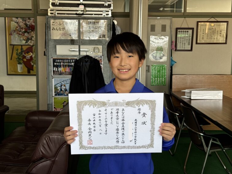2025.12.12 1年生 5年生 6年生 12/12(金) 授賞式を行いました 12/12(金) 校長室で授賞式を行いました。 第69回思考大会 優秀賞 5年生 第34回未来の科学の夢絵画展 富山新聞賞 1年生 日本空手道会 三浦派糸東流空手道錬成大会 少年Bの部 形 準優勝 6年生 おめでとうございます!勉強、絵画、スポーツ…様々な分野で活躍する古府っ子に大きな拍手を送ります。今後も頑張ってください。