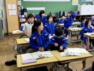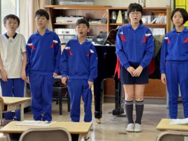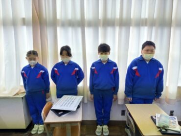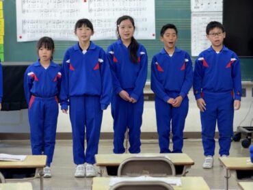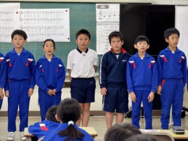 4時間目、音楽の授業で「もみじ」の二部合唱を聴かせてもらいました。クラスを黄色チームと緑チームの二つに分けて、歌いました。どちらのチームと歌声がとてもきれいでした。二部合唱も音程がつられないように気を付けていました。