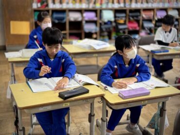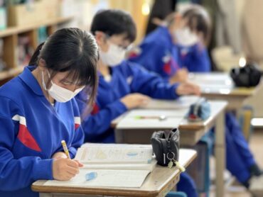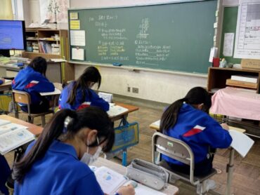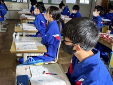 算数の授業で、教科書の問題をしているところです。2学期の教科書の勉強の範囲はここまでのようです。みんな真剣に授業を受けていて、中学校生活に向けての心構えができているように感じました。