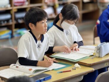 国語の時間に「冬のもの」を見付けていました。ちょうど今の時季で、冬休み、クリスマス、お正月等、楽しいことがいっぱいで、たくさん思い付いてノートに記録していました。発表したい2年生もいっぱいいました。