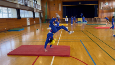 ハンドスプリング、成功!着地も決まり、かっこいいですね。
